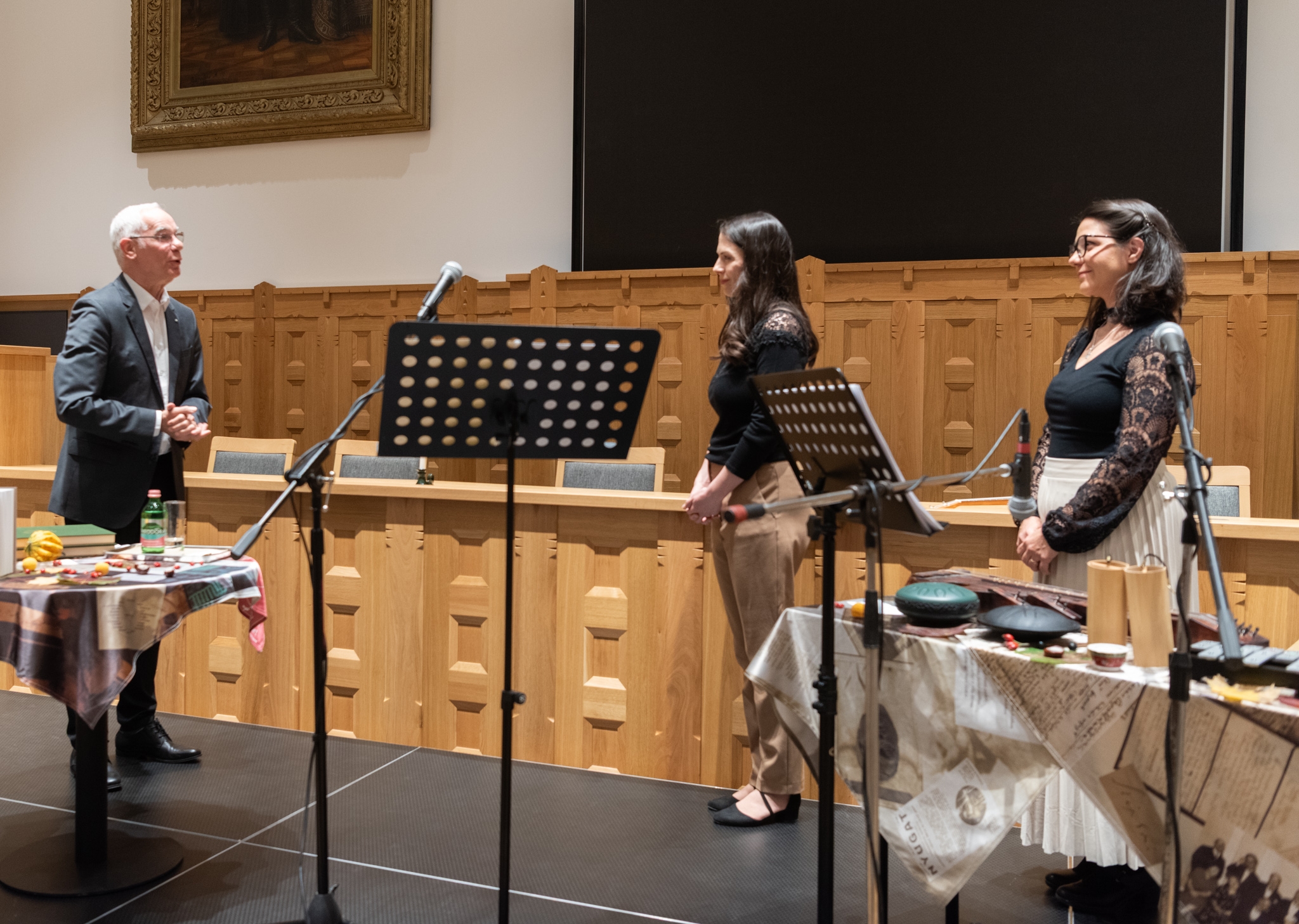 A püspök köszönetképpen átadta az előadóművészeknek a Dunamelléki Református Egyházkerület ajándékát is: a töki református templom festett mennyezetkazettájának egy-egy mását.