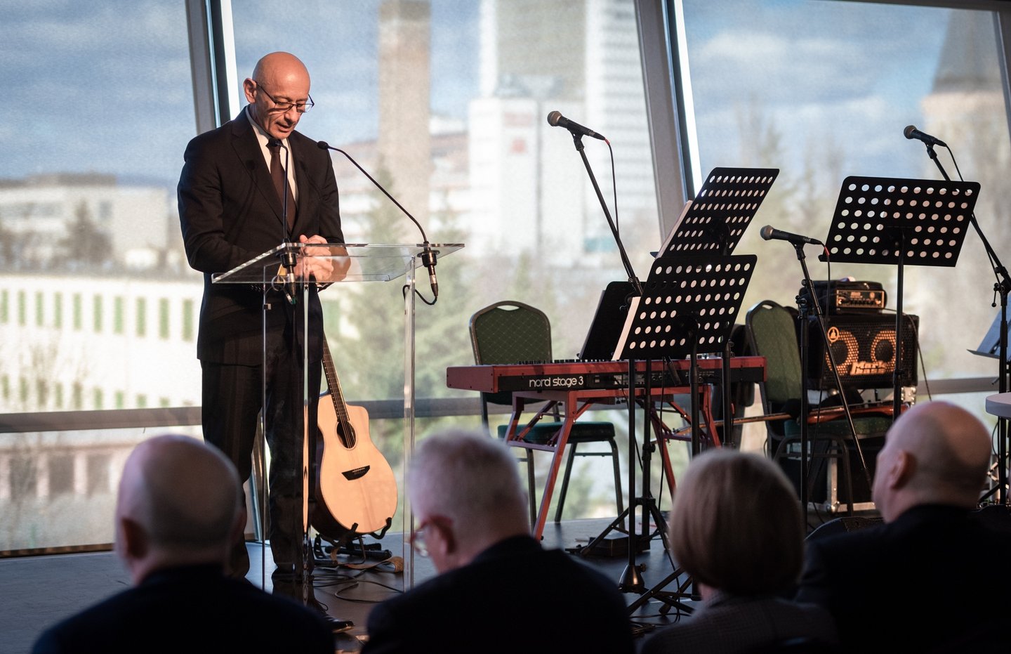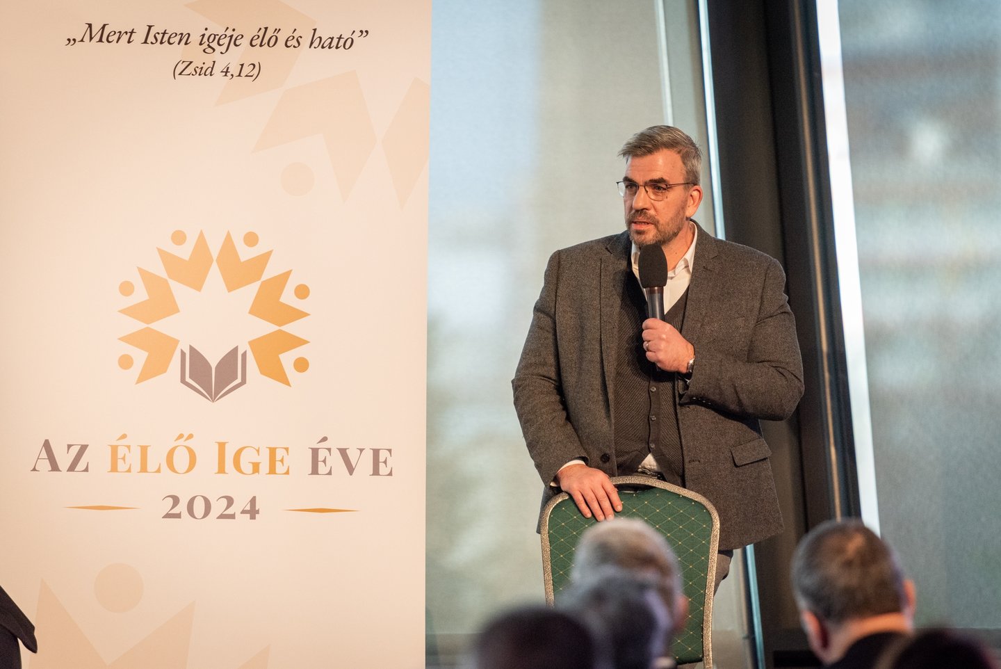 „Nincs nagyobb kiszolgáltatottság, mint az élő Igét kapni munkaeszközünknek” – fejtette ki. Az élő Ige élő Személy: Jézus Krisztus, aki sose lesz a birtokunk, mindig meg kell küzdeni érte. „Azért vagyunk itt, hogy egymást az élő Igével erősítsük, azzal, ami nem a miénk, de egymásnak adhatjuk.” Kiemelte: nem tudunk az élő Ige nélkül élni, és nem is akarunk, ahogy egymás nélkül sem. A közös áldás, a közös cselekvés útját keressük, 2024-et pedig azért akarjuk különlegessé tenni, hogy az élő Ige senki által nem birtokolható magától értetődőségét helyezzük életünk középpontjába. Azt akarjuk felmutatni, hogyan cselekszik az Ige azoknak az életében, akik Krisztust, az élő Igét követik – mondta a püspök.