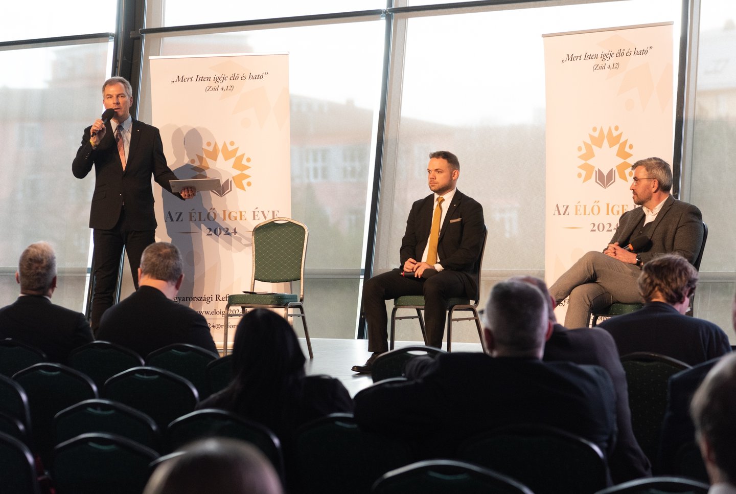 Gér András zsinati tanácsos moderálásával Csomós József nyugalmazott tiszáninneni püspök, Győri-Daniné Tóth Anett a balatonszabadi és Zila Péter, a Nagyvárad téri gyülekezetek lelkészei a lelkipásztori hivatás fordulópontjairól beszélgetett három fő téma mentén. Először arról osztották meg gondolataikat, hogyan kapták elhívásukat, majd arról, hogy mi erősíti meg őket a szolgálatukban, illetve mi az, ami a lelkipásztorokat megtarthatja a szolgálatukban.
