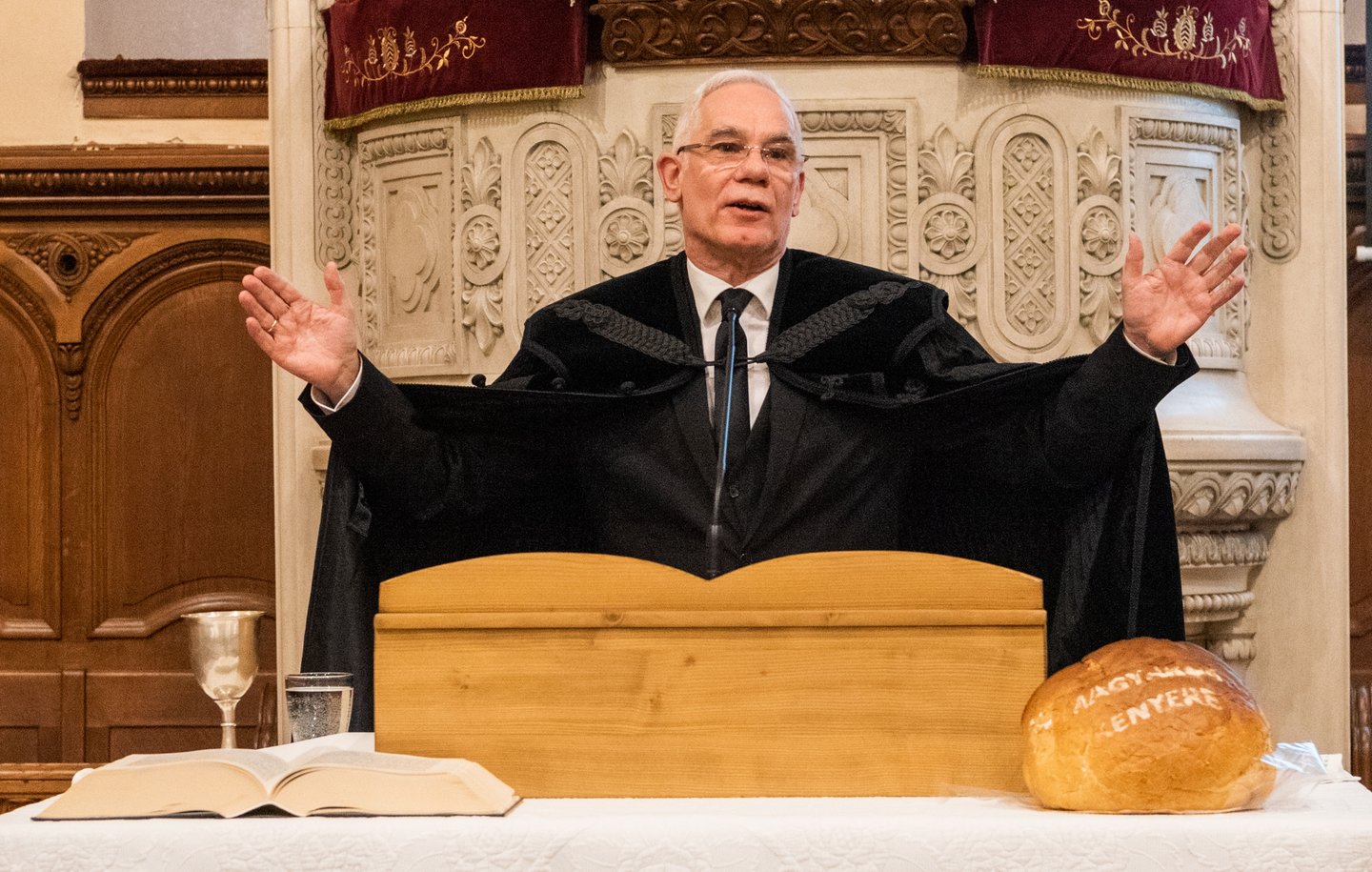 Steinbach József, a Dunántúli Református Egyházkerület püspöke a keresztyén bizonyságtétel csodájára világított rá. „Az írott Ige alapján az élő Igét hirdetjük, aki Jézus Krisztus, és azt az evangéliumot, melyet elhozott a világba.” A püspök imádságában arra kérte Istent, hogy adjon nekünk Igét, amelyből betű, majd kő lesz, hogy abból az élet kenyere szülessen, és a holt betű megelevenedhessen.