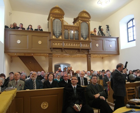– Nagyon sok nehézség, nyomorúság van egyházunkon belül is. Isten különös ajándékaként kaptunk elhívást arra, hogy ez a gyülekezet megmutassa, hogyan lehet szeretettel, Krisztusra figyelve teljes egészében felújítani valamit. Nagyon sok ajándékunk volt, és időközben nagyon sokan segítettek. Több jele volt annak, hogy Isten előtt kedves a mi vállalkozásunk. Az egyik az orgonánk, amit ajándékba kaptunk Hollandiából, egy két manuálos, Johannus lábpedálos orgona. Csak el kellett hoznunk és be kellett állítanunk a helyére. A régi orgonakép megmaradt, ezért a műemlékvédelemnél nem kellett külön engedélyt kérnünk. Aztán a másik jel az volt, hogy azoknak, akik a hajléktalanmisszióból jöttek segíteni az építkezésben, templomfelújítás befejezését követő néhány héten belül kivétel nélkül mindegyiküknek bejelentett állása lett, el tudott költözni albérletbe és a helye felszabadult másoknak. Ez is Isten ajándéka.