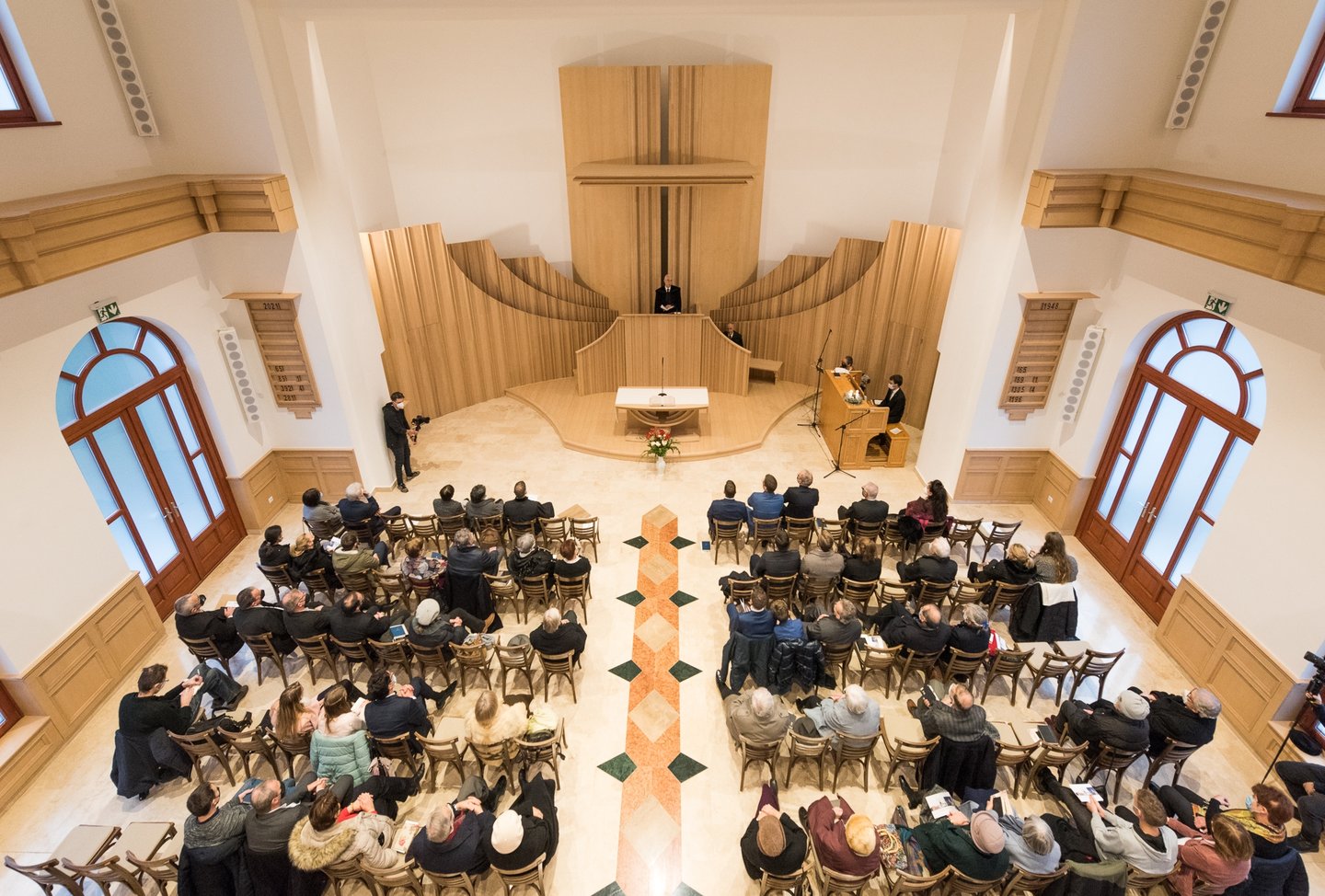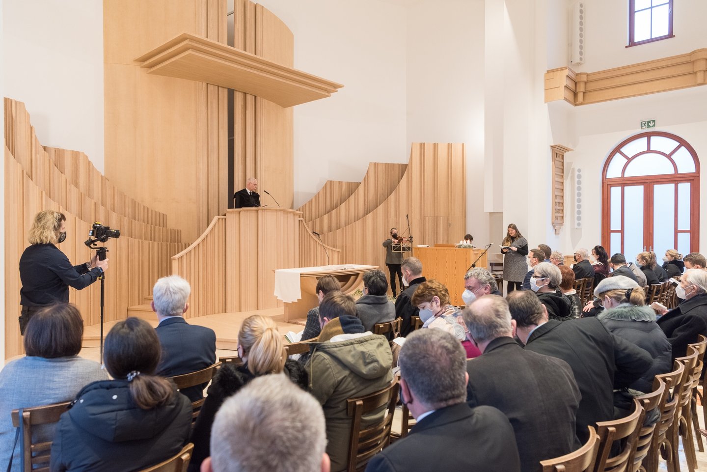 „Sokféle terv és gondolat született arra nézve, hogyan lehetne az épületet bővíteni. 2018-ban kaptunk rá nagy összegű támogatást a magyar kormánytól, így el tudtunk indulni. A tervezés elsődleges szempontja az volt, hogy az istentiszteleti élet mellett egyéb alkalmai és sokféle közössége is megfelelő helyet kapjon. Ezt a tervező maradéktalanul figyelembe is vette. A régi vendéglőnek sok alagsori helyisége volt, raktárak, szuterének, amelyeket korábban nem lehetett más célra használni, ezek most a felújítás során bekerültek a gyülekezet hasznába. Körülbelül egyharmadával bővülhetett így a hasznos terület” – mesélte a volt püspök.