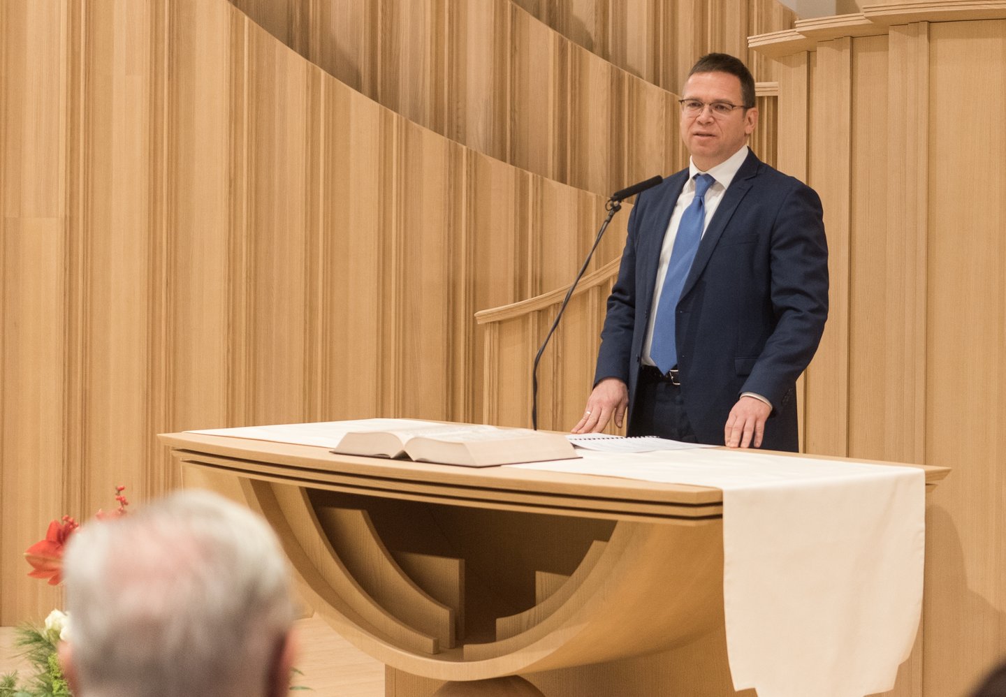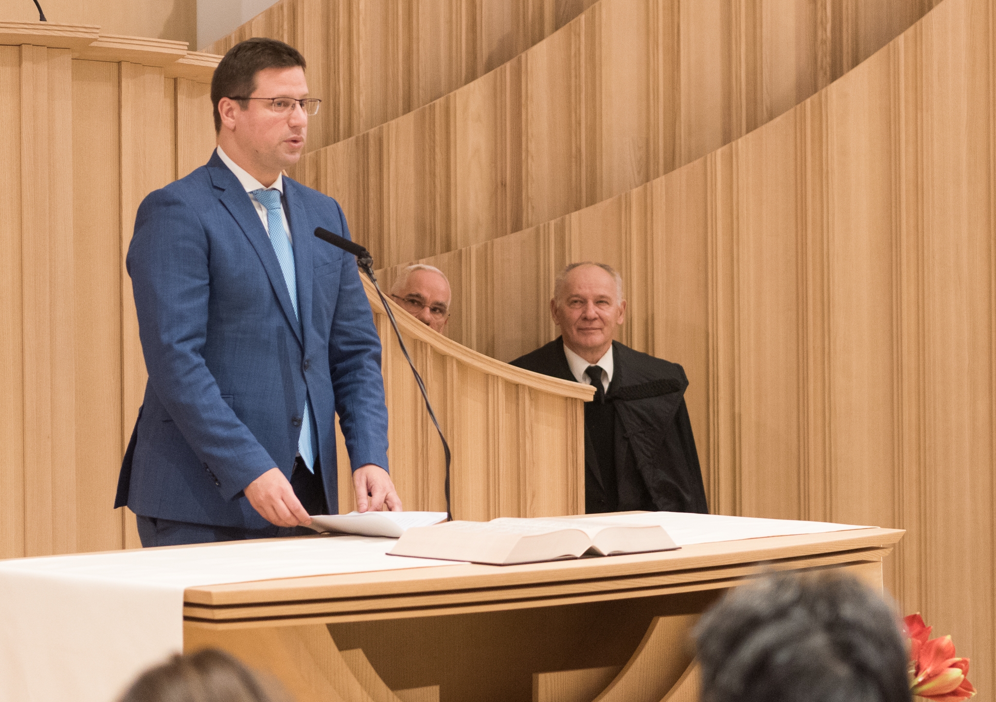 „Jár-e jutalom az építőknek? Egyetlen jutalom, hogy megtehetjük, hogy részesei lehetünk az építkezésnek” – mondta köszöntőjében Fürjes Balázs, a Miniszterelnökség Budapest és a fővárosi agglomeráció fejlesztéséért felelős államtitkára. Kifejtette, hogy az építkezés mindig csapatmunka, amelyhez bátorság, szabadság, de felelősség is szükséges, a munka fegyelme pedig nem fojthatja meg az álmot. „Az építkezés véget ért, de az építés folytatódik” – utalt a lelki munkára, amely a gyülekezet előtt áll.