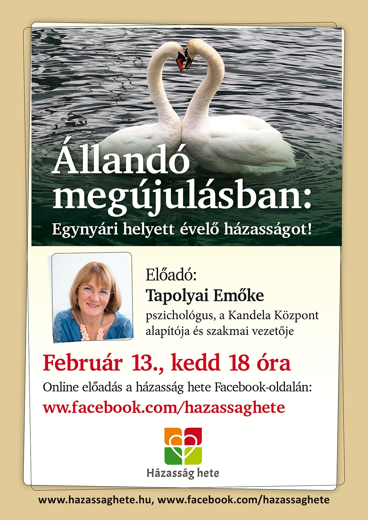 A fenti gondolatok nem kertészeti tanácsok, az egynyári növények pedig nem szó szerint értendők, hanem hasonlatként. Tapolyai Emőke pszichológus, a Kandela Központ alapítója és szakmai vezetője a Házasság hetén tartott online előadásában „virágnyelven” beszélt párkapcsolataink természetéről, és arról, hogyan tehetjük házasságunkat „évelővé”, hogyan érhetjük el, hogy házasságunk ne csak megmaradjon számunkra, de képesek legyünk arra, hogy megéljük, örüljünk gazdagságának és újra és újra megújítsuk.